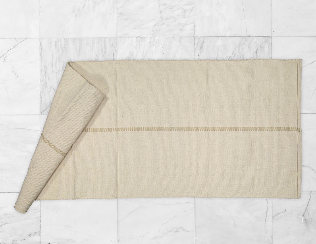 Hand woven yoga mat. Woven in 100% cotton with center line in Jute stripe
