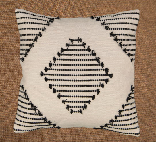 Hand woven cushion cover front with a Diamond pattern with a cotton fabric back including a YKK zip .