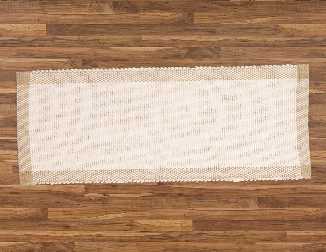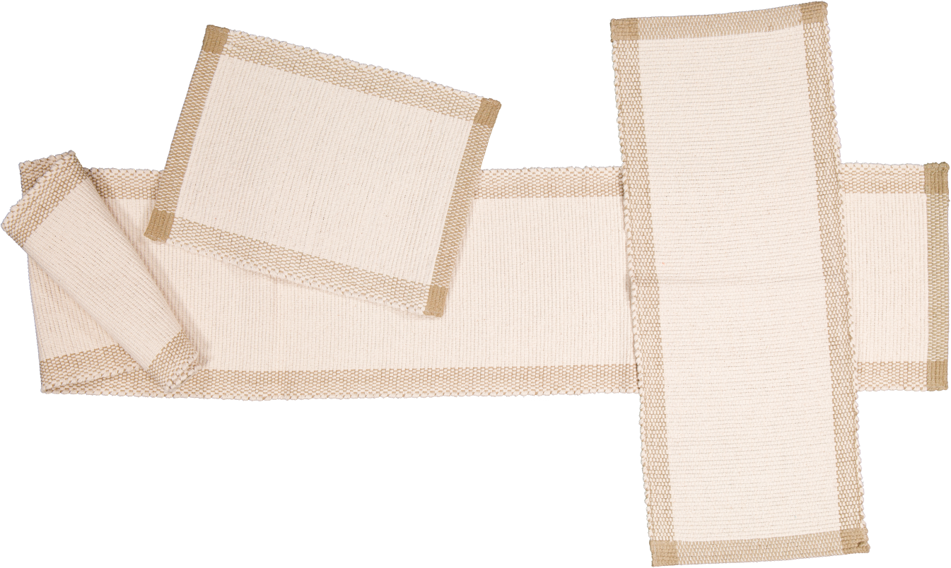 Placemat and Runners in Pebble Weave. Natural with Jute Border.