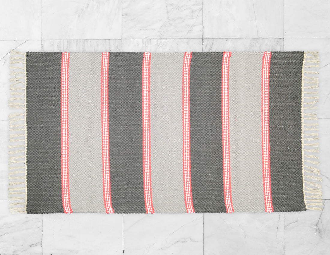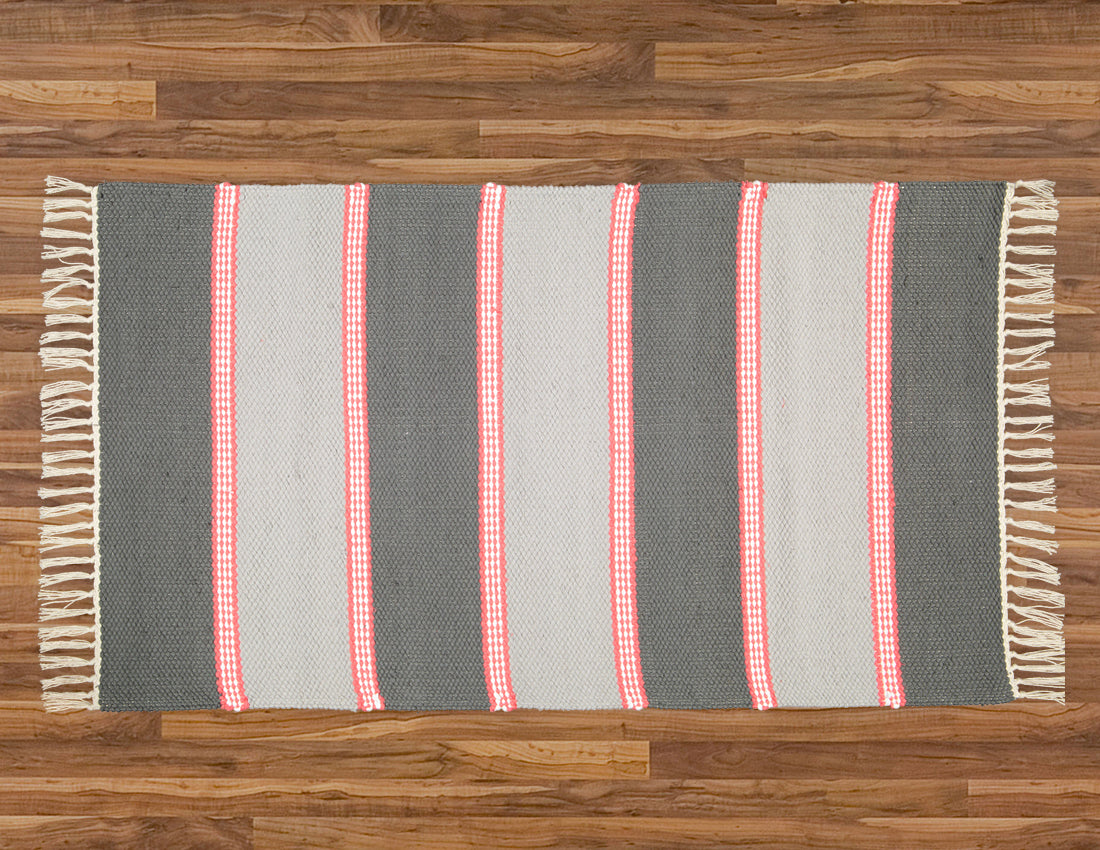 Plush Rug Option 2 Charcoal and Grey with Coral stripes