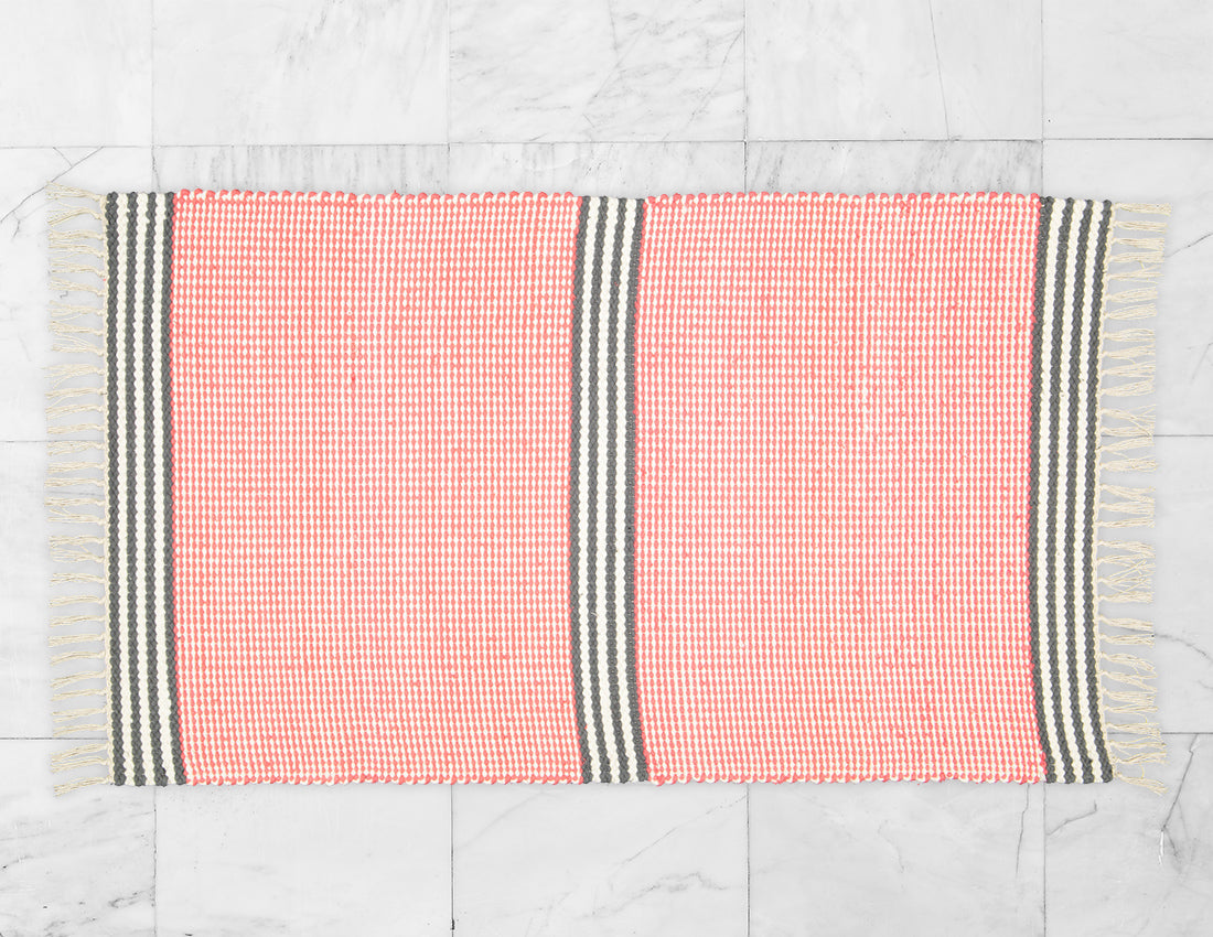 Plush Rug Option 3 Coral and Natural with Black and Natural Stripes