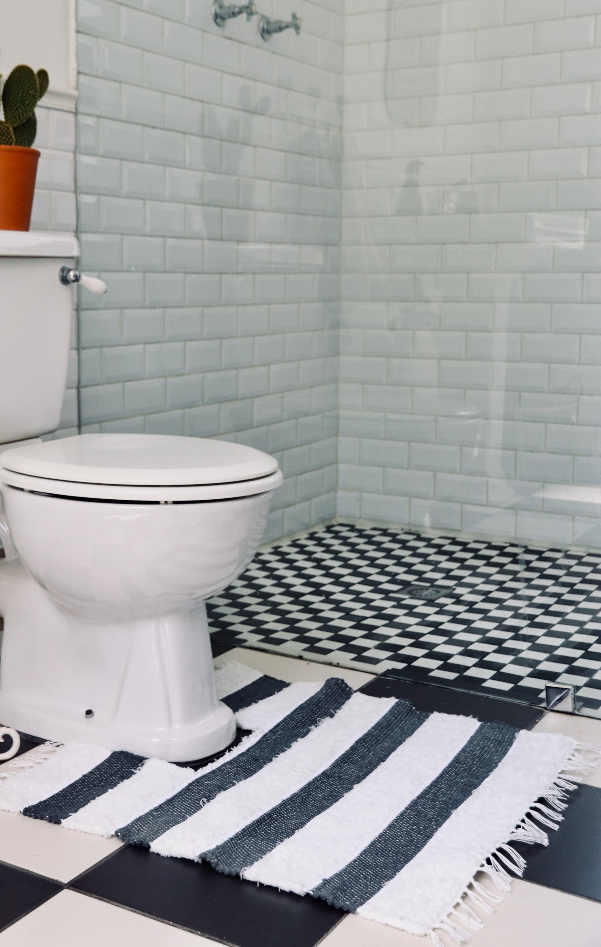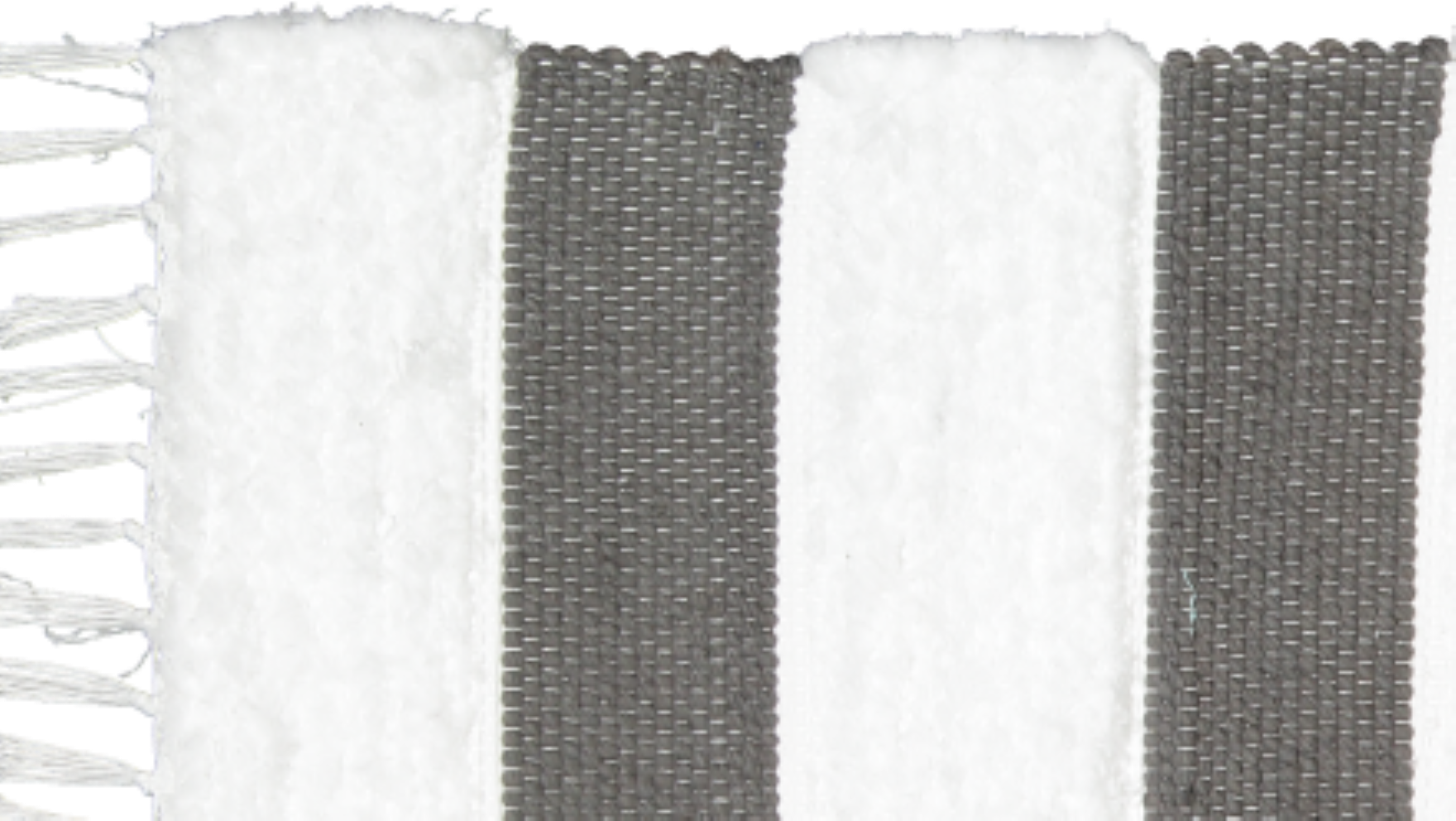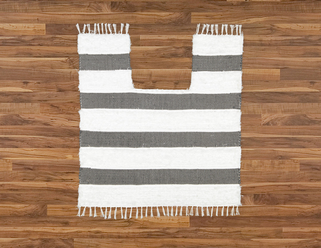 Hand woven cotton toilet pedestal dhurrie and fluffy Charcoal and White bands